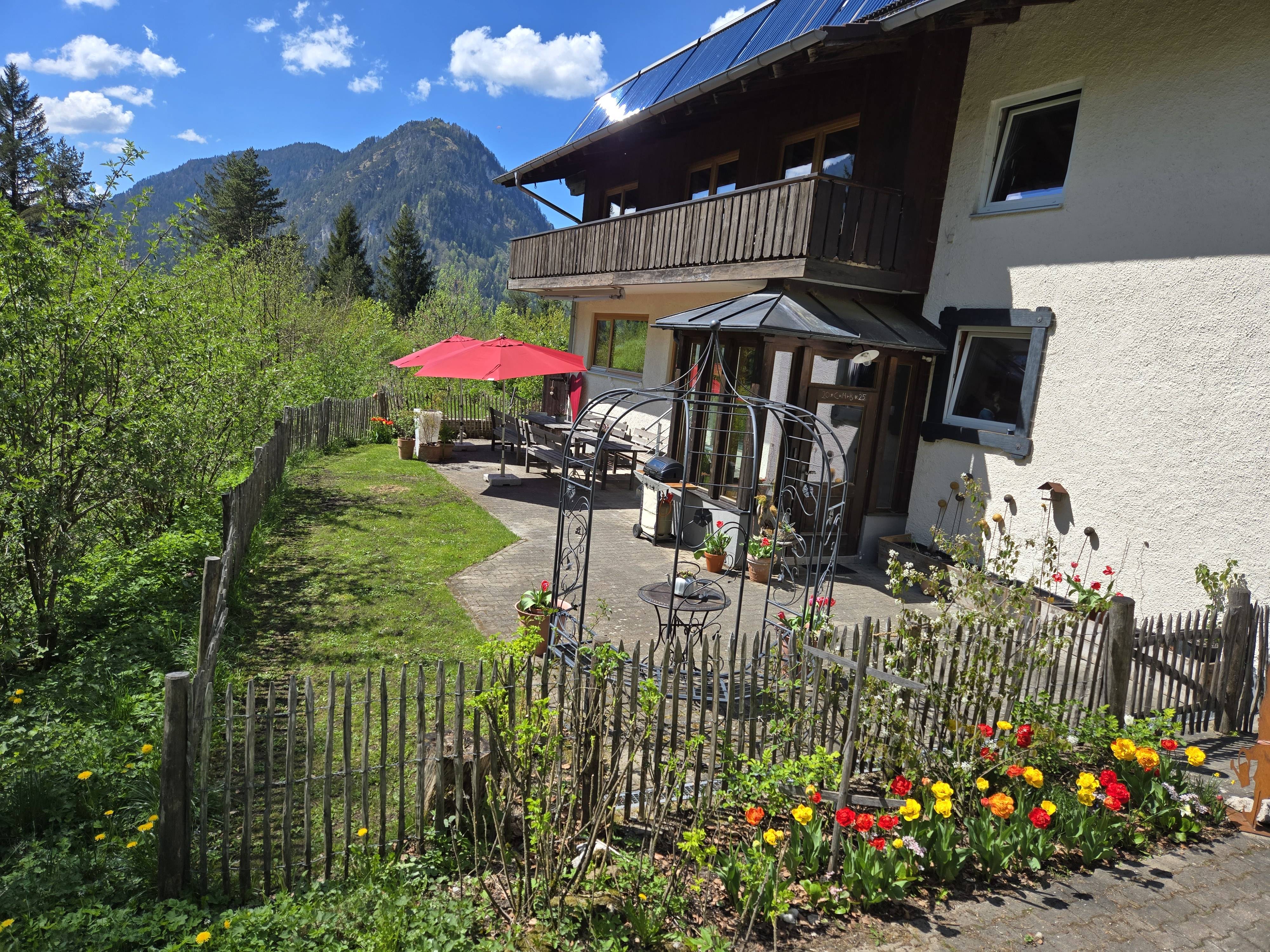 Kommen Sie herein - ins „Dreimäderlhaus - Urlaub am Berg“. Lockern Sie die Wanderstiefel, machen Sie es sich bequem, ruhen Sie aus, denn Sie haben Ihr Ziel erreicht. Unser Gruppenhaus liegt in Alleinlage auf 900 Metern Höhe, eingekuschelt in eine Wiese am Waldrand, weitab von Trubel und Lärm. Genießen Sie die friedvolle Stille, den Traumblick auf die Pfrontener Berge, das sanfte Rauschen der Vils. Ein Alpenlandhaus, wie aus dem Boden gewachsen, ein Lieblingsort für jeden, der die befreiende Einfachheit genießt. Mitten in einer herrlichen Bergnatur und direkt am Weitwegenetz der Allgäuer-Wandertrilogie. „Dreimäderlhaus - Urlaub am Berg“ - Ihr Domizil für herrlich unbeschwerte Zeit mit guten Freunden oder der Familie.