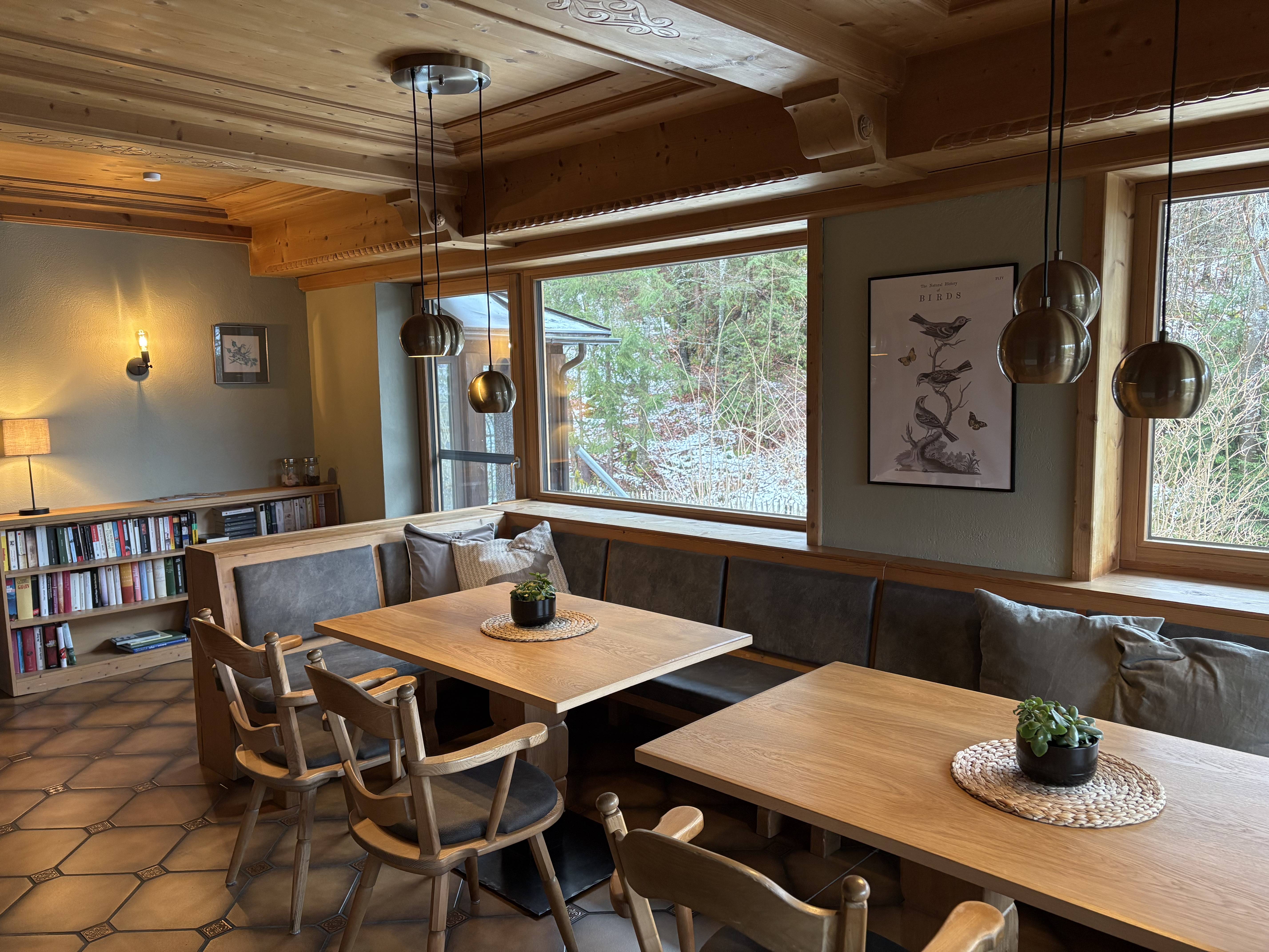 Die mächtigen Pfrontener Berge ziehen den Blick nach oben in den tiefblauen Himmel, ein kleiner Bachlauf murmelt durch die sattgrünen Wiesen und aus den Kronen der alten Buchen zwitschert es hell. Warmes Holz und frisches Grün finden Sie auch in den sechs behaglichen Zimmern, dem gemütlichen Almstüberl und der Gästeküche. Die Natur haben wir gleichsam nach drinnen geholt und hinzugefügt haben wir – nichts. Denn diese Schönheit hat keine zusätzlichen Schnörkel nötig.